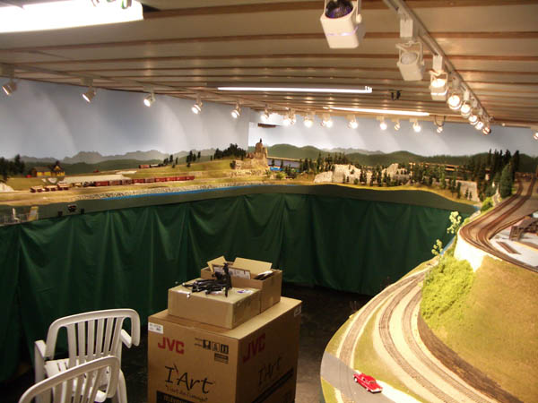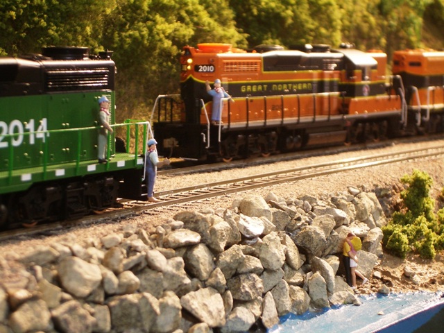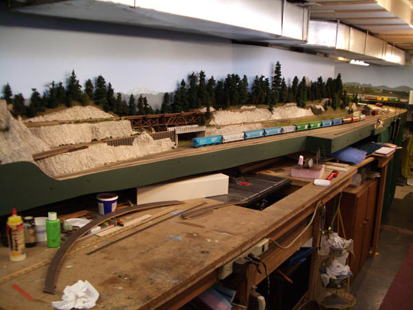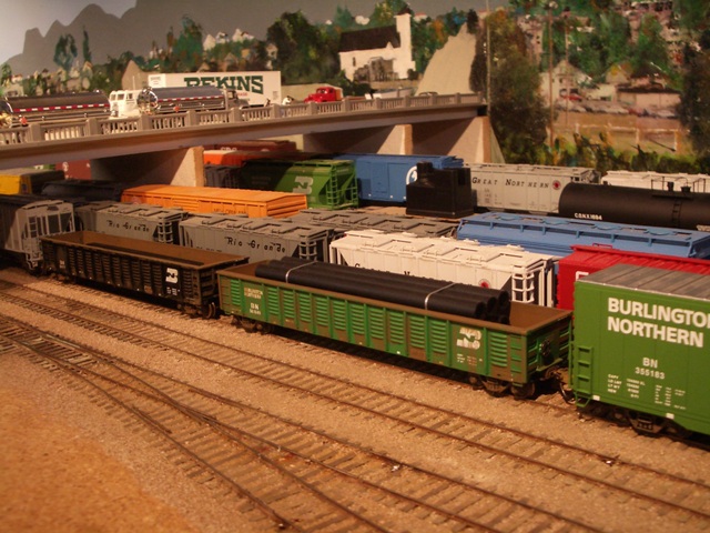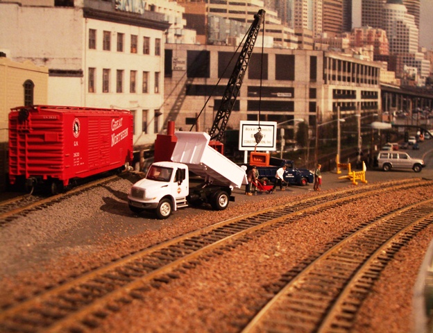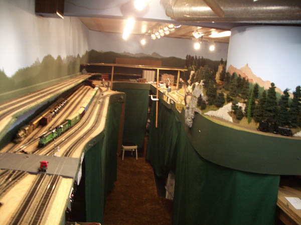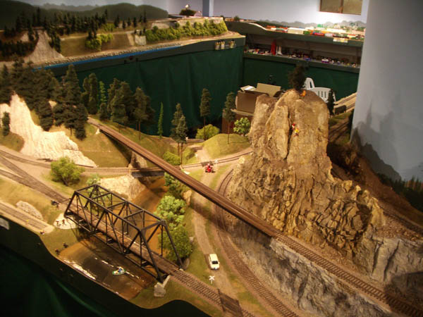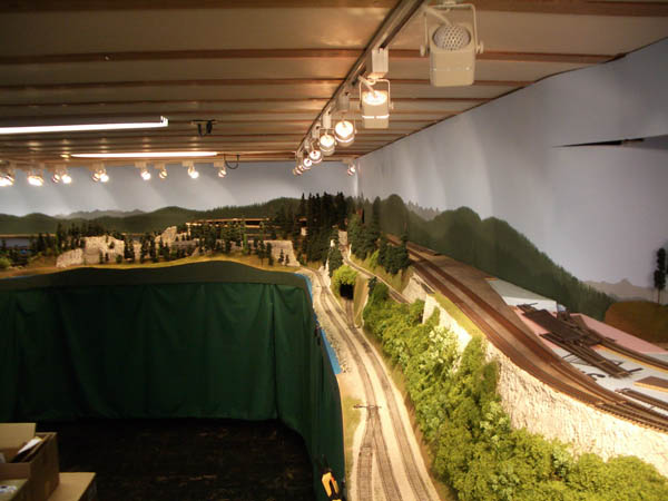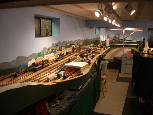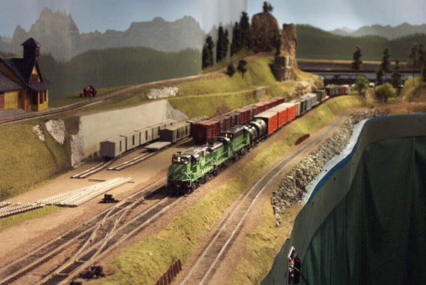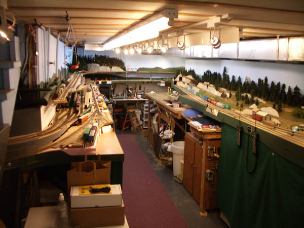 HO Burrlington Northern Train Layout Photo Tour:![]() This is Seattle’s Balmer yard at Interbay, with Queen Anne painted on the backdrop, and the car repair shop and RIP tracks in the foreground. David Strombom painted the backdrop with the help of some color xerox copies of some photos of the real place. ![]() Northbound trains pass along Golden Gardens and Carkeek parks on their way along the shore of Puget Sound north towards Everett ![]() The center of the layout is a large ping-pong table sized space surrounded by the mainline along Puget Sound ![]() The visitor’s first view of the layout is the 30 foot long yard at interbay on the right, Ballard in the distance, and Everett on the left. ![]() The left aisleway leads along Everett’s Bayside yard on the right and South Seattle’s Stacey St. yards on the left. ![]() Continuing along the left aisleway brings a crossing of Royal Brougham and the passenger yard on the left, and a forced perspective mountain scene with On30 and HOn3 on the right ![]() looking back up the left aisle is Everett’s Bayside yard above the main workbench. That trestle is an old Campbell kit I built as a teenager in 1967. ![]() In Everett the choice must be made at Delta Wye to proceed either north (left) towards Vancouver BC, or east (right) to climb up towards Stevens Pass on the old GN route. The bridge crosses the Snohomish river here. The amazing rockwork was built by Eric Vannice ![]() after passing the Delta Wye, eastbound trains climb into the mountains and arrive at a reverse loop at Skykomish yard, the eastern end of the line. The trees are all made of barbeque skewers furnace filter, brown paint and green ground foam. There are about 500 of them on the layout so far. ![]() an eastbound mainline train proceeds past Goldbar on the way up to Skykomish, on the opposite side of the peninsula from Everett. A narrow gage line has its terminus here as well. ![]() There's construction taking place near Skyway Luggage in downtown Seattle near Pier 69. To the right of this scene the double track mainline dives between stair treads over the the Stacey St. yards. ![]() This scene of Interbay yard underneath the Drevus St. overpass shows that I am just starting to weather the rolling stock on the layout, with these two gondolas as examples. Wait 'til I get to those cement cars behind them! ![]() At Golden Gardens Park it can be hard for a couple to get any privacy.... ![]() Those new Micro-trains log cars certainly look at home on that old trestle! |